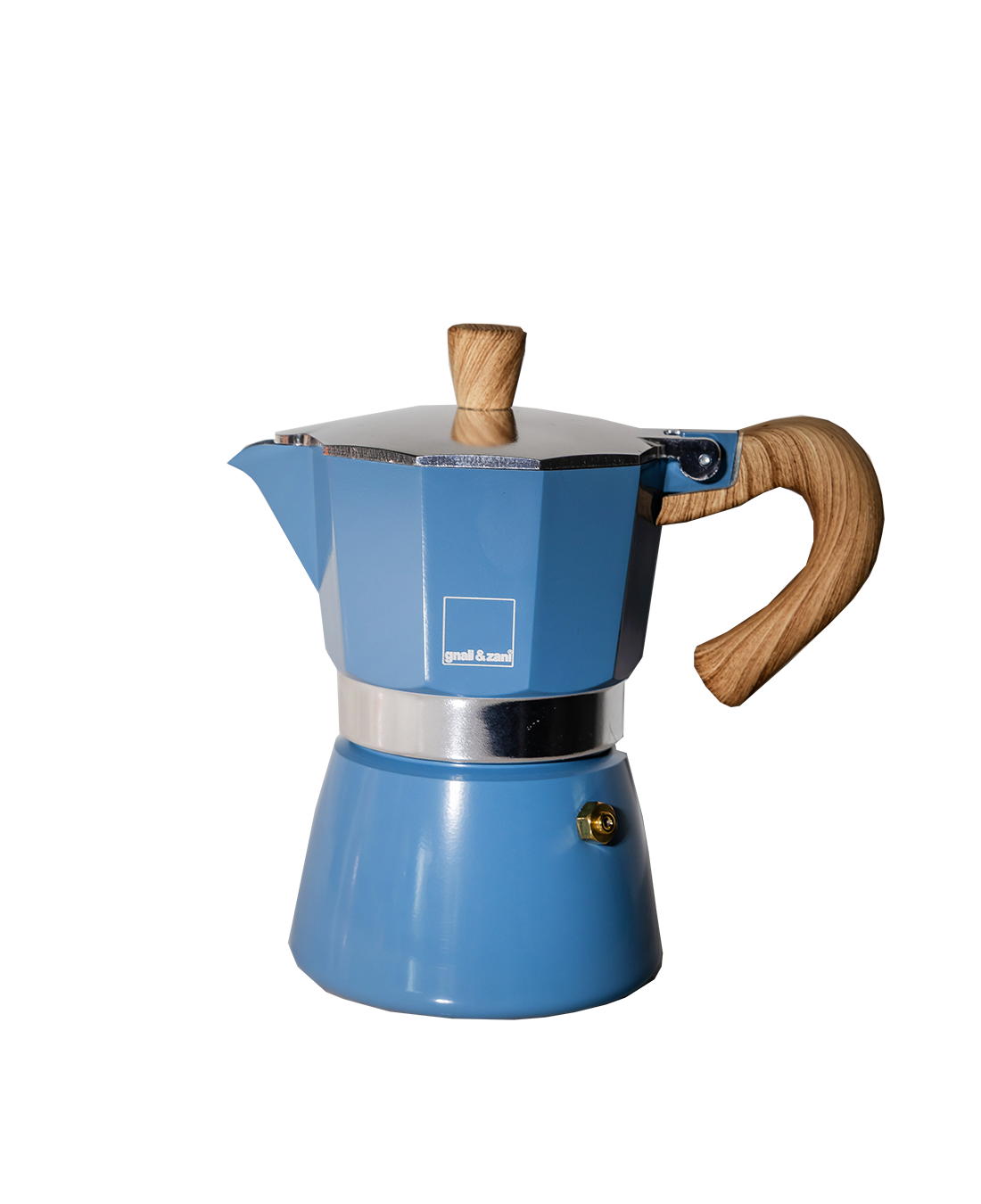 Elegant mokkakanne i moderne design fra det italienske merket Gnali & Zani i en fin denim blå farge. Kannen rommer 130 ml kaffe.